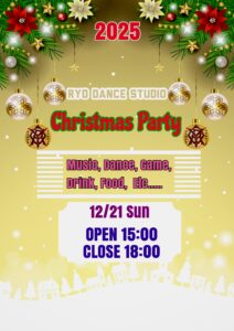 Ryo Dance Studio Christmas Party 🎄今年もこの季節がやってきました🎄 🗓12月21日(日) 📍場所:ライオダンススタジオ 🕒スタート:15:00 🕕終了:18:00 今年もたくさんの皆様とお会いできることを、 講師一同楽しみにしております。 思いっ...…